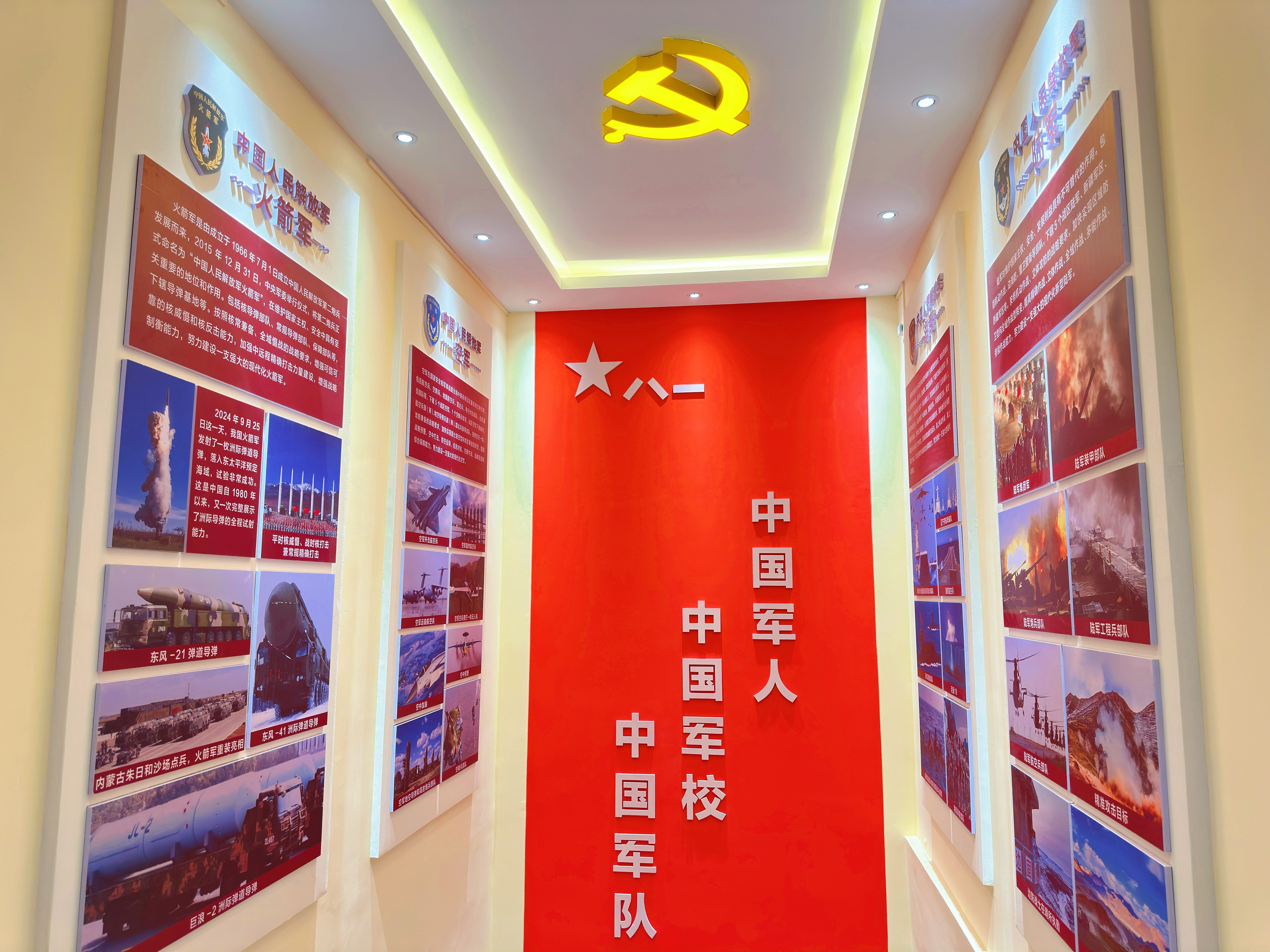 本次开馆特别增设军事装备实物展区,馆内陈列了1000余件涵盖我军各历史时期的珍贵退役装备、文献与证章。重磅展出来自火箭军的某型洲际战略导弹一级火箭残骸实物,据悉此品类在全国范围内公开展出尚属唯一。