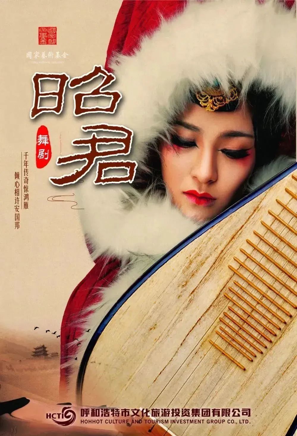 一袭红裘,琵琶拥怀