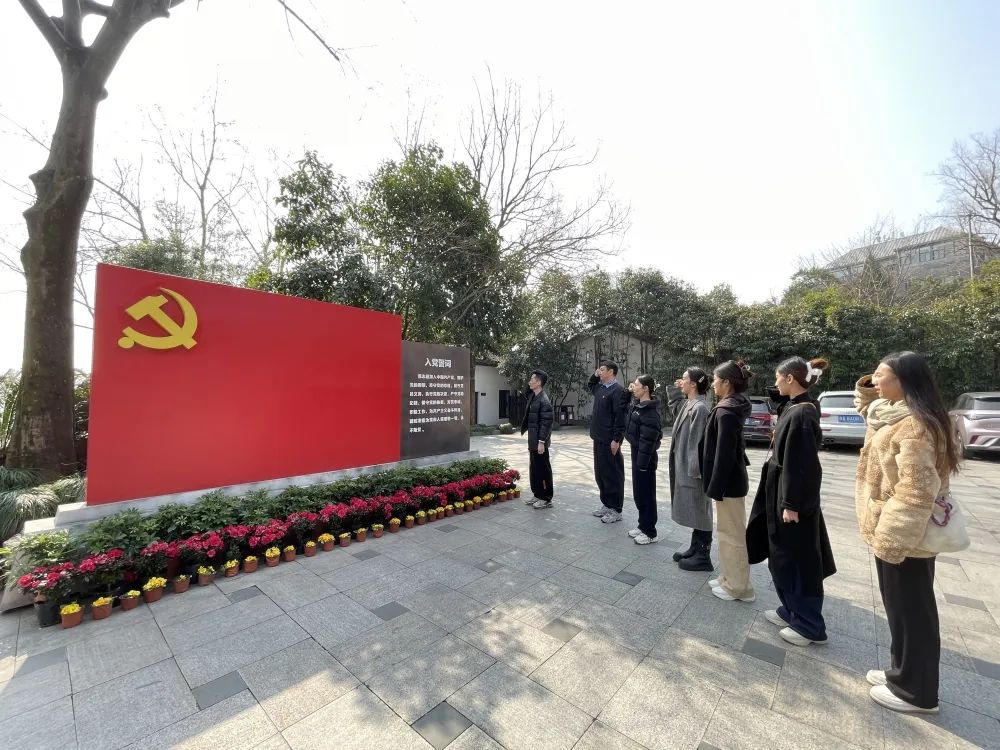 参观过后,支部党员面对鲜红的党旗重温入党誓词。