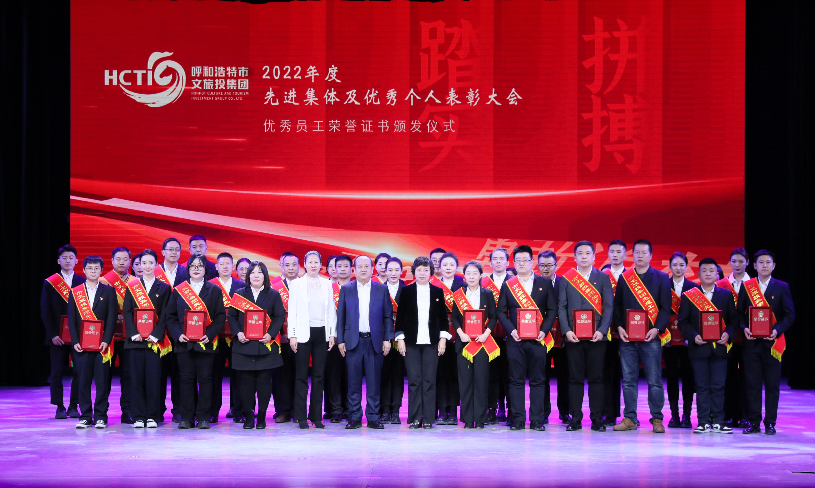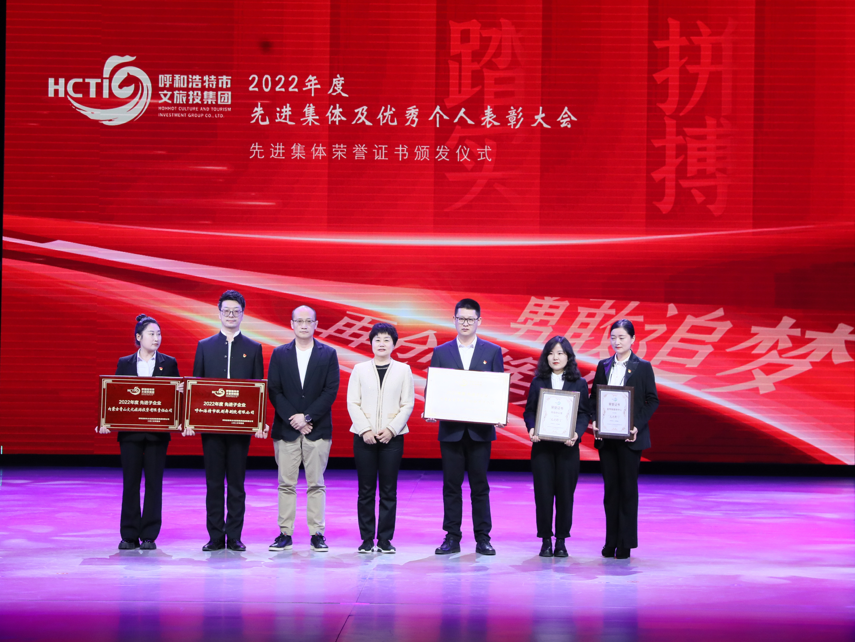 集团党委书记、董事长高丽芳向集团全体干部职工和长期以来关心支持集团发展的社会各界人士表示诚挚的感谢,对受到表彰的先进集体和先进个人表示祝贺。过去的一年是集团成立以来极不平凡、极其不易但又卓有成效、充满希望的一年,在市委、市政府的坚强领导以及市国资委的有力指导下,集团全力以赴谋发展、促转型,防风险,各项工作顺利开展、成效显著。这一年不断巩固企业改革成果,文旅项目建设运营卓有成效,文艺创作呈现百花齐放态势,文艺精品在全国开展巡演近20场,完成各类惠民演出、公益演出超过500场。集团不断发挥着国企兴文化、展形象的使命担当。与内蒙古广播电视台共同推出跨年晚会及参与央视、卫视、地方台各类活动的录制效果显著;2022年“呼和浩特冰雪节”“呼和浩特音乐嘉年华”两大区域性品牌活动实现重大突破;内蒙古国际会展中心累计开展各类展会、新闻发布会、专题会议等70多场;同时完成了扶贫、人才培养建设、安全生产、疫情防控等工作,品牌文化影响力稳步提升。