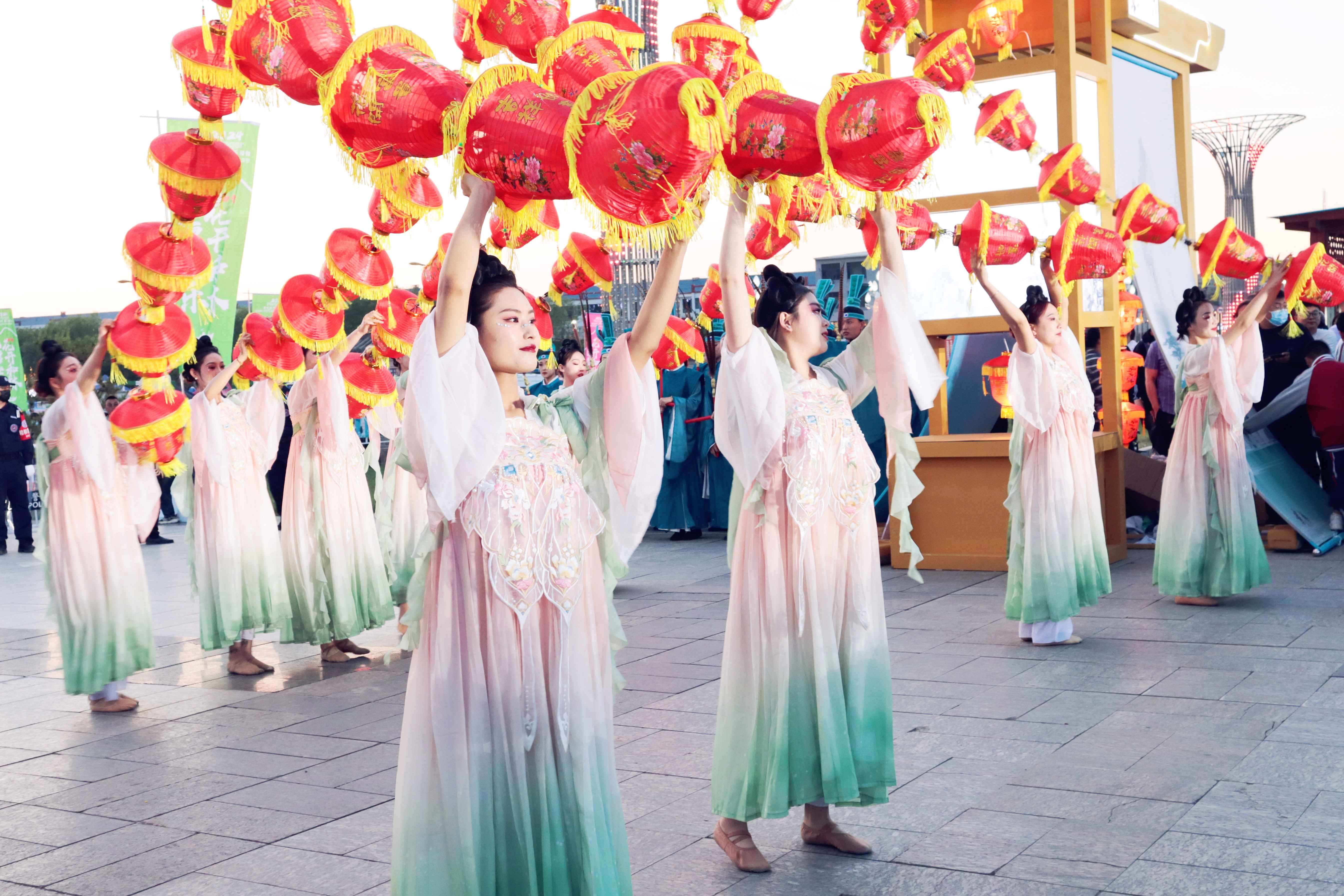 芍药“飞”天,鼓声“震”地。演出在热情洋溢的开场歌舞《璀璨生辉,与花同行》中拉开帷幕。随后,不仅有鱼龙舞、芍药仙子等传统舞蹈表演,还有多媒体音舞诗画、创意杂技、高空吊环、飞天威亚等节目轮番上演,为群众带来全新的体验,台上台下掌声不断、叫好连连。