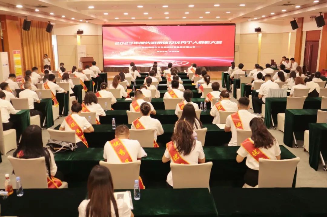 会议宣读了集团党委《关于表彰2023年度先进集体和优秀个人的决定(呼文旅投党发〔2024〕58号)》,通过视频形式展现了先进集体及优秀个人的精神面貌和时代风采,并对集团公司在2023年工作中涌现出来的3个先进部门、3家优秀子公司、16名优秀中层管理人员和90名优秀员工进行了表彰和颁奖。