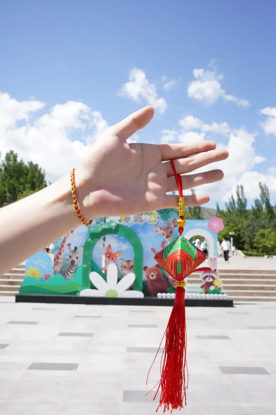 在端午传统习俗中,佩戴五彩绳和香囊寓意着祈福纳祥。此次活动特别安排了端午送五彩绳和香囊的环节,分别在上午10:00和下午14:00进行。工作人员精心准备了色彩鲜艳的五彩绳和散发着淡淡艾草香的香囊,当游客们接过这份充满祝福的礼物时,不仅能感受到传统节日的氛围,还能将这份美好的祝愿带在身边。五彩绳在手腕上轻轻晃动,香囊的香气在空气中弥漫,仿佛将端午的韵味传递到了每一个角落。